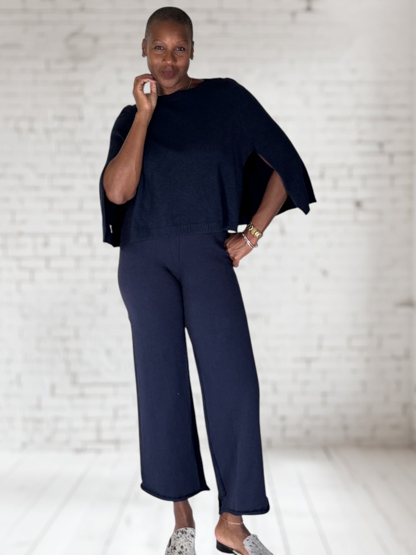 Get comfy in these warm and cozy sweater knit pants! Crafted from soft to the touch knit fabric, these pants feature an elastic waistband, raw hems that fall just above the ankle, and a streamlined pocketless silhouette.
