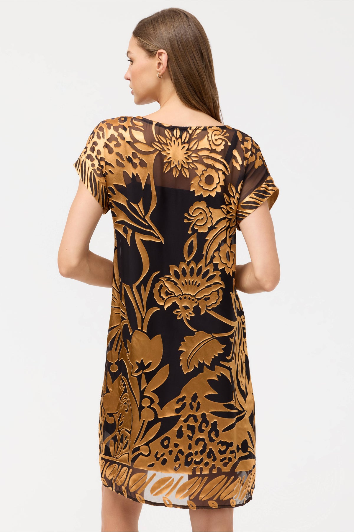 Crafted from a unique silk blend, the Davidii Burnout Daiyu Dress is equal parts comfort and style. Designed with a rounded neckline and Dolman sleeves, this slip-lined dress is accented with a contrasting border at the hemline. Pair with classic pumps and a beaded clutch for an elegant dinner date.
