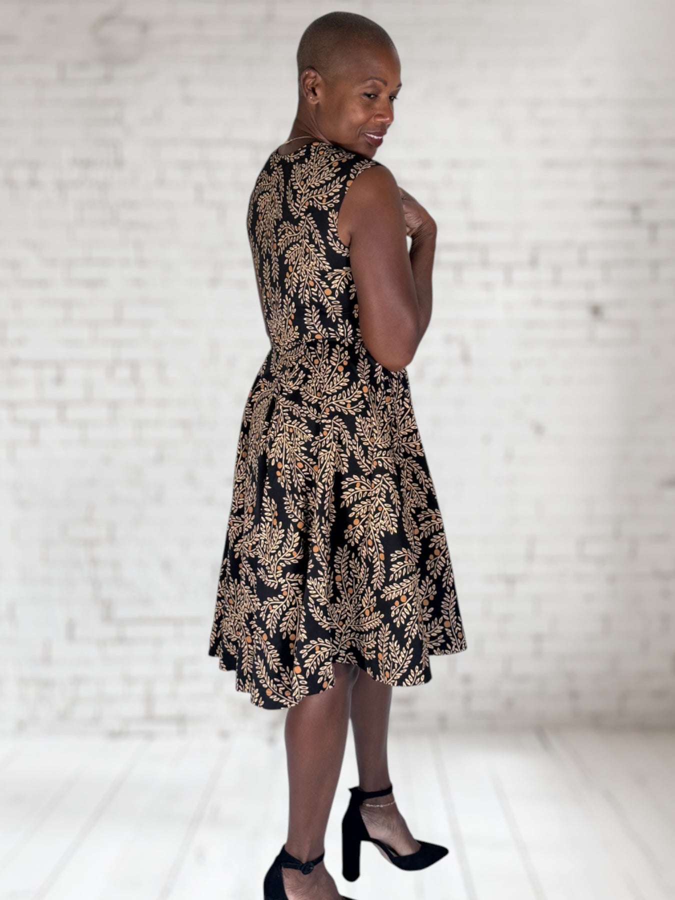 This cute and comfy dress is perfect for a night out with the girls! Crafted from soft and stretchy fabric this dress features a square neckline, wide sleeveless straps, and falls around the knees. Pair with heels and gold jewelry for a chic look or dress it down for the day time with a layered turtle neck and boots!