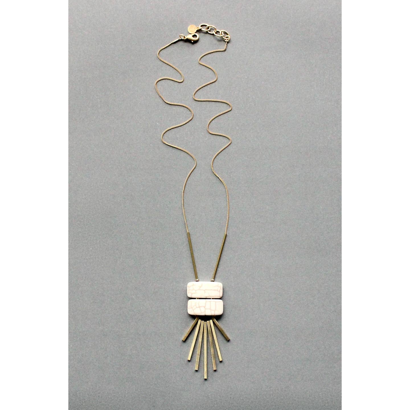 22” necklace with gold colored plated chain, magnesite, and brass bars. 1 inch extender.