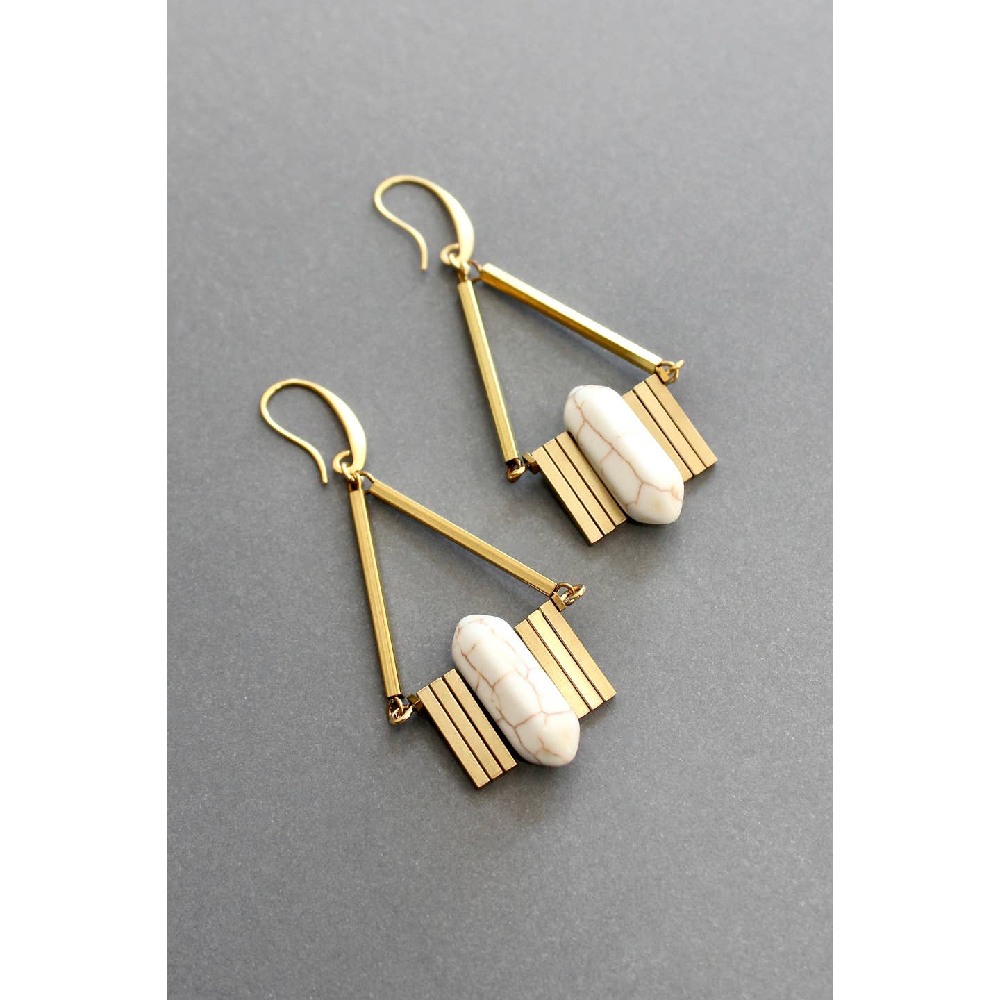 18k gold plated brass earrings with magnesite and brass bars. Each earring weighs .245oz and measures 2.875in from top of hook.