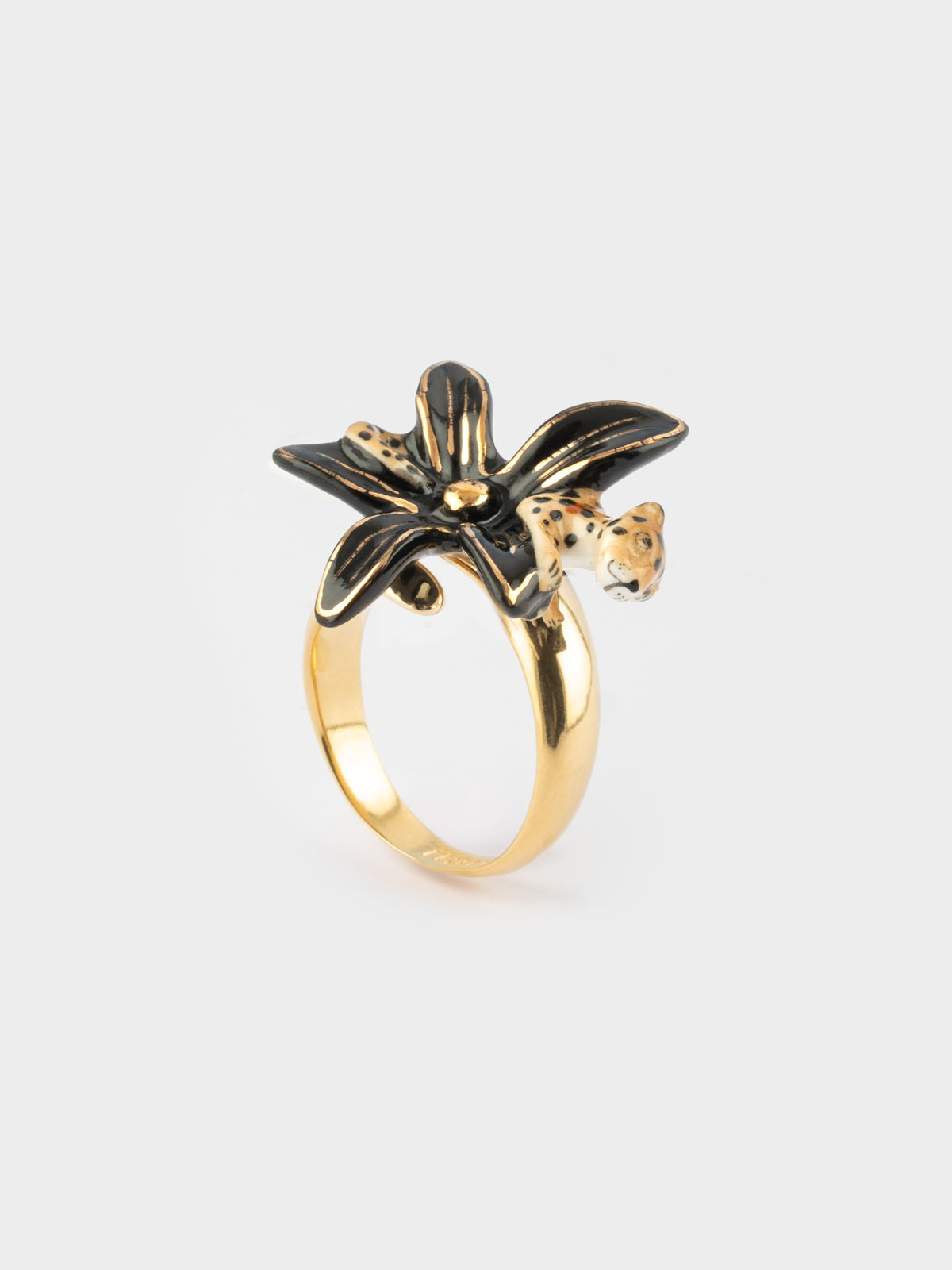 Adjustable ring in porcelain and brass plated with fine gold.