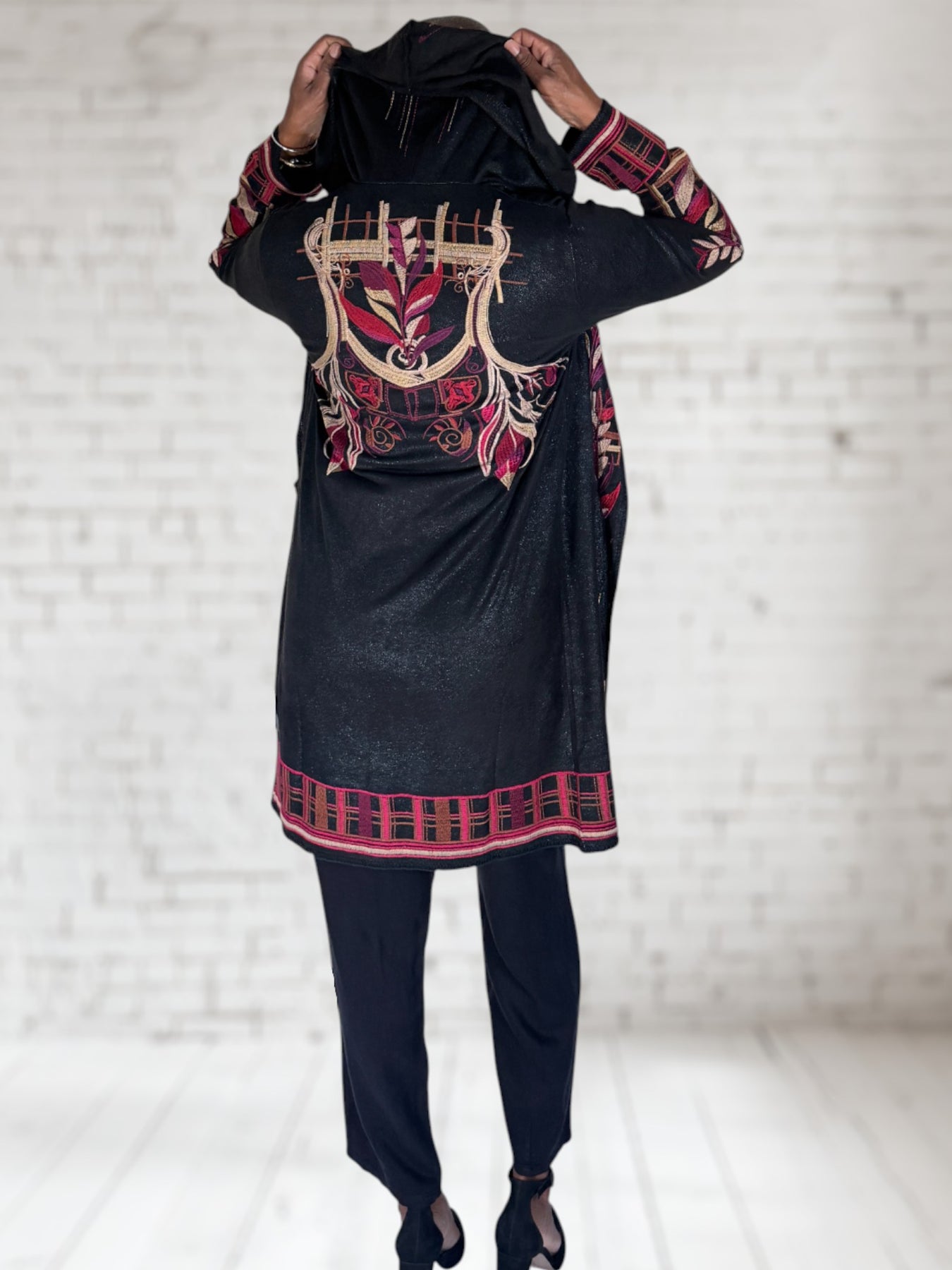 Beautifully embellished with intricate floral embroidered detailing, the Biya Duster is equal parts stylish and cozy. Designed with an attached hood and long sleeves, this duster features a rich pattern and is finished with an open front and on-seam pockets. Layer over a casual tee and relaxed-fit denim for a polished casual look.
